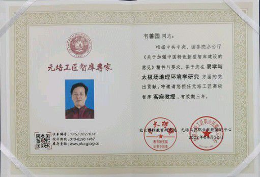2020 年第十七届中国科学家论坛组委会专家委员会对韦善国大师的研究成果作深入调查、科学论证,严格审定,授予:韦善国同志『中国国学文化工作先进个人』;聘任:韦善国同志为『高级研究员』;中国科学家论坛与广西太极场科技发展有限公司结成『战略合作单位』聘任韦善国教授为副理事长单位、聘请韦善国为高级研究员并列入『国家驱动科技强国创新行动千人计划太极场科技首席专家』。中国管理科学研究院商学院为进一步促进太极场科研成果的推广应用,在中国管理科学研究院商学院设立太极场科学研究应用中心』任命韦善国为中心主任。